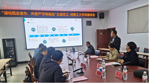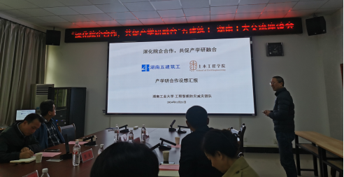 随后,五建筑工总经理鲁滔详细介绍了企业的发展情况。五建筑工成立于2018年12月,隶属于湖南建投五建集团,是一家集装配式设计研发、PC构件生产、装配式建筑施工、混凝土性材料研发生产和工程设备租赁为一体的现代化建筑综合服务商。近年来,企业在多个领域取得了显著成绩,积累了丰富的实践经验。同时,他也强调了与学院开展产学研合作的重要性,希望通过此次会议,共同探索产学研合作的新模式、新路径,推动企业在技术创新和产业升级方面取得更大突破。
