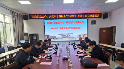 2024年11月21日,湖南建工五建建筑工业化有限公司(以下简称“五建筑工”)鲁滔总经理、陈友总工程师一行5人来到bwin必赢开展产学研合作交流。bwin必赢党委书记刘园园、院长李兆超、副院长刘方成、副书记钟直峰、土木工程系与智能建造系主任及教师代表参加了座谈会。共同探讨如何通过深化合作,实现资源共享、优势互补,推动产学研深度融合。会议由副书记钟直峰主持。