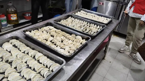 随后,在养老院院长的带领下,志愿者与老人们开启了一场温馨的包饺子活动。活动过程中,志愿者们虽然手法生疏但充满了温情,他们虚心地向老人们和院长请教。一来一回中,原本素白的饺子皮在欢声笑语中逐渐变成了一个个饱含心意的饺子,整齐排列在餐盘上,仿佛也在静静聆听着这跨越年龄的交流。小小的饺子包裹着浓浓的情,让这个冬至格外温暖。