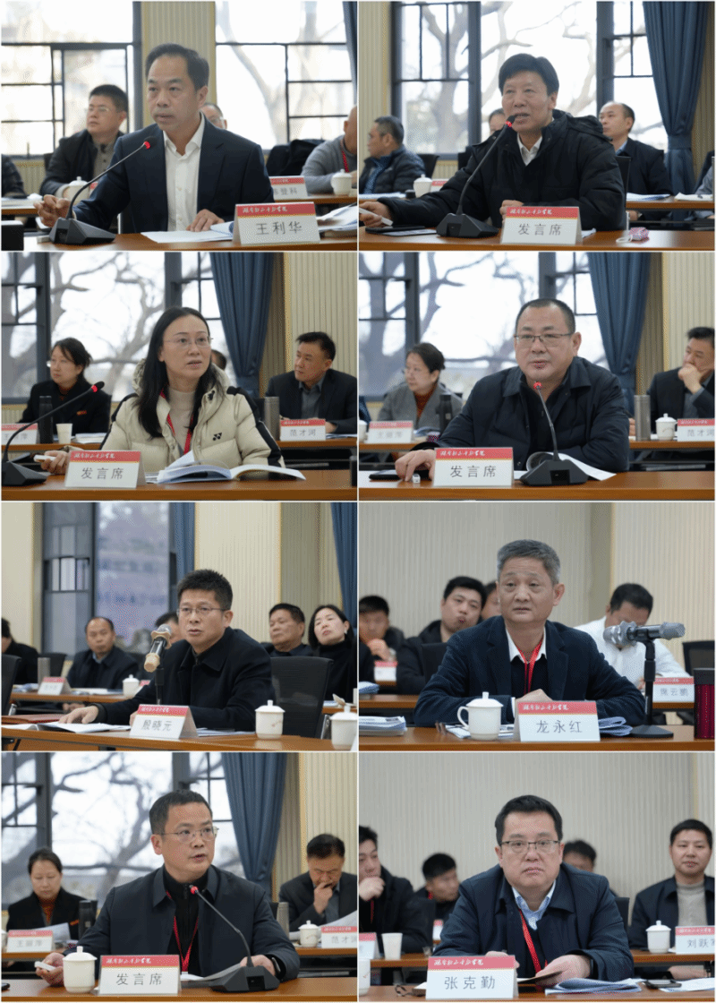 党委副书记王利华、副校长范晓阳、于惠钧、何杰分别以《以高质量党建为双优改革提供坚强保障》《2025年人事工作汇报》《湖南工业大学专业结构优化调整方案》《聚焦国家地方战略 优化学科发展体系》《完善资产管理体系 强化后勤保障支撑》为主题进行了主旨发言;副校长李若梅、殷晓元、龙永红,纪委书记张克勤进行了重点发言。与会人员围绕校领导的讲话主题,结合工作实际分享了自己的思考和建议,并进行了深入的交流与研讨。