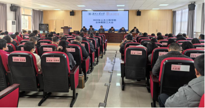 接着,李兆院长传达了学校务虚工作会议精神,深入解读了学校的发展战略和工作重点,并要求全体教职工将会议精神贯彻到日常工作中。同时,李兆超院长对过去一段时间的工作进行了全面总结,既肯定了成绩,也指出了存在的问题与不足。他鼓励全体教职工在新的一年里继续团结协作,努力推动学院发展再上新台阶,为学校的发展贡献力量。