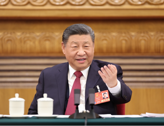 3月5日下午,中共中央总书记、国家主席、中央军委主席习近平参加他所在的十四届全国人大三次会议江苏代表团审议。新华社发(占政 摄)