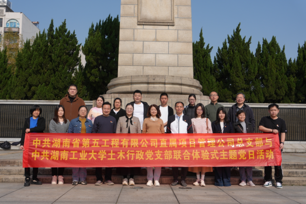 2025年3月22日,bwin必赢土木行政党支部与湖南省第五工程有限公司直属项目管理公司党总支在株洲流芳园联合举办"党建引领聚合力,院企合作谱新篇"主题党日活动。双方通过红色教育、业务研讨和团队共建,深化党建与业务融合,助力湖南新型工业化建设。