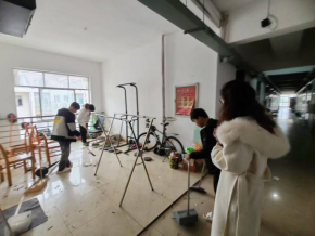 随后,各年级辅导员深入现场,进行统筹部署,同学们分工明确、干劲十足,重点对阳台夹缝、楼道转角等高频卫生死角开展专项整治,使长期被忽视的隐蔽区域重现洁净面貌。。针对公共区域闲置物品堆积问题,师生协同完成废旧桌椅的分类整理与规范处置,显著提升了公共区域的功能性与安全性。