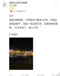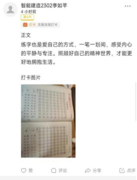 线上活动中,“心灵故事汇”成为大家情感共鸣的舞台。同学们通过图文形式,分享自己的心理成长故事、压力应对经验以及生活中的暖心瞬间。校心健中心推出的“心灵滋养,共建生命绿洲”21天打卡活动吸引了众多同学的积极参与,大家通过每日坚持,培养关注心理健康的习惯,在点滴行动中为心灵注入能量,共同构建了一片充满生机的“心理绿洲”。