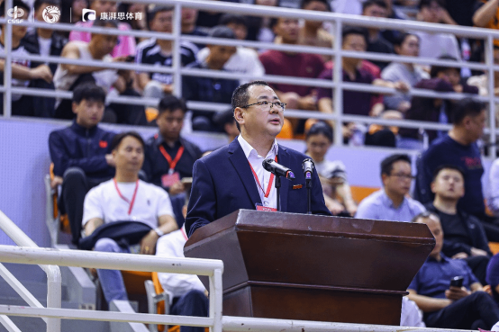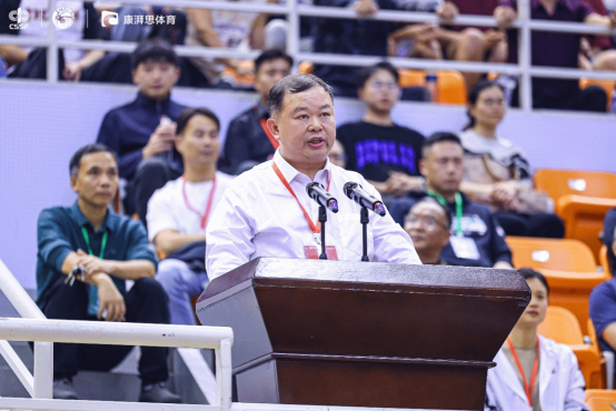 副校长于惠钧在致辞中代表全校师生向远道而来的各参赛队伍致以热烈的欢迎,并预祝各队在比赛中取得优异成绩。他指出,中国大学生篮球一级联赛作为我国高校体育赛事的重要组成部分,不仅是展示大学生体育风采的重要舞台,更是弘扬体育精神、促进校园文化建设的重要载体,为无数热爱篮球的青年学子提供了追逐梦想、超越自我的机会。他期望,全体运动员发扬“友谊第一,比赛第二”的体育精神,以精湛的球技、默契的配合和顽强的意志,赛出风格、赛出水平;希望裁判员和工作人员恪守公平公正的原则,为赛事保驾护航;更希望所有参与者在株洲这片热土、在湖南工业大学青春校园里,留下美好而难忘的回忆。