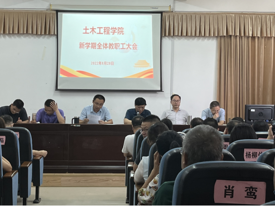 院长李兆超通报了暑假期间学院各项工作开展及完成情况,提出了本学期的主要工作任务。土木工程专业在今年上半年被学校确定为博士点培育学科,学院下一步的工作将紧紧围绕这个目标,出台一系列激励措施。学校对博士点培育学科的经费将会由学院5个科研团队负责人统筹支配,学院绩效分配也将向能上表的成果倾斜。2022年下半年,要着重抓好重点实验室申报、土木工程和建筑环境与能源应用工程的专业认证、水务工程新专业申报、国家基金申报、横向经费入账、就业工作、人才队伍建设、与亚利桑那大学和德比大学合作办学、新专业建设、疫情防控等工作。