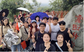 第二站抵达九郎山脚,学员们热情高涨,开启了徒步登山之旅。登山路线途经上林寺、雲迴栈道、九郎亭、好汉亭,一路上,大家相互鼓励、携手前行,通过创意拍照记录珍贵瞬间,展现青春活力。陡峭的山路并未阻挡大家的脚步,反而激发了学员们的斗志,经过努力,所有学员路线抵达绿心之巅。