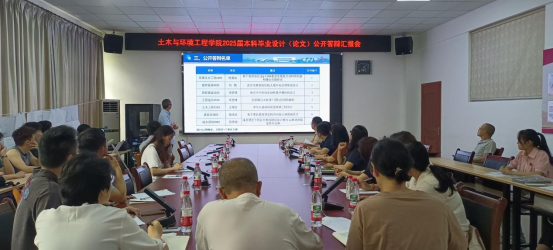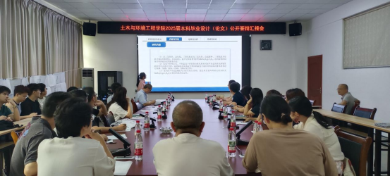汇报伊始,主持人刘方成副院长简要汇报了土木与环境工程学院2025届本科毕业设计情况,并宣布了参加公开答辩的学生名单。