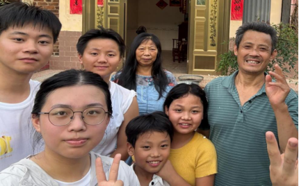 ·五个孩子围着说 “谢谢”,背后是父亲的 “尊重课”