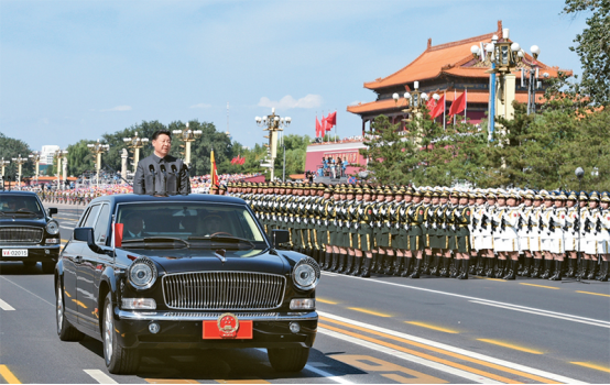 2015年9月3日,纪念中国人民抗日战争暨世界反法西斯战争胜利70周年大会在北京隆重举行。这是中共中央总书记、国家主席、中央军委主席习近平检阅受阅部队。新华社记者 李学仁/摄