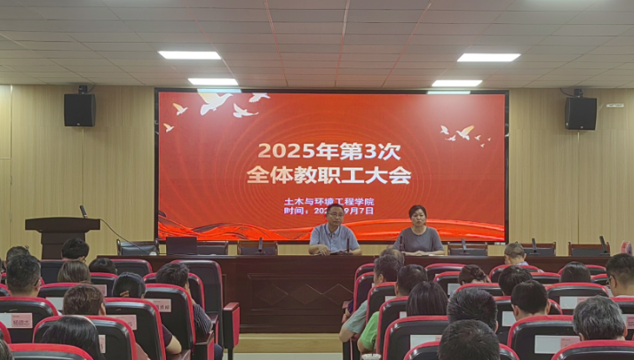 为系统总结暑期各项工作推进成效,科学部署下半年重点任务方向,9月7日下午4时,土木与环境工程学院在崇真楼连廊会议室召开 2025年第三次全体教职工大会。全院教职工参会,会议由党委书记刘园园主持。