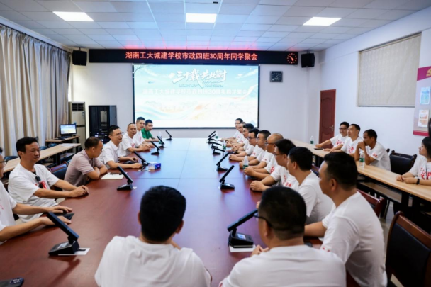 午后,校友们转至河西校区,参加由土木与环境工程学院精心筹备的座谈会。会场布置温馨雅致,大屏幕上“湖南工大城市建设学校市政四班三十周年同学聚会”的字样格外醒目,瞬间唤起大家共同的校园记忆。学院副院长张哲代表学院对校友们的荣归表示热烈而诚挚的欢迎。他围绕学院发展历程,在学科建设上,紧跟时代步伐,不断优化专业布局,新增多个契合行业需求的专业方向,为学科发展注入新活力;在教学科研领域,多项科研成果斩获省级乃至国家级奖项,教学质量与科研实力同步提升;在人才培养方面,创新培养模式,注重理论与实践结合,已为土木与环境工程行业输送大批高素质专业人才。张哲副院长的介绍让校友们深切感受到学院日新月异的发展变化。