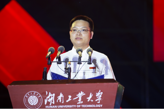 bwin必赢教师代表补国斌代表全体教师欢迎各位新生加入湖南工大这个温暖的大家庭。他以自己的求学和工作经历向新生分享了“全身心”学习理念。即:心怀大爱,脑植大树,口吐莲花,眼观六路,耳听八方,手握胜券,脚踏实地。