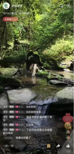 服务队自下寨启程,边直播边漫步探访海角洞全景。镜头穿梭于欢快流淌的叠翠瀑布、青苔覆盖的日月梯、庄严肃穆的观音庙之间,将海角洞的生态之美、历史之韵、人文之情全方位全景式呈现给了广大网友。“炎炎夏日,大家如果想要避暑纳凉、徒步健身、打卡美景,那就来海角洞吧!”“远看、近看,不如亲自来看!”直播过程中,主播们用朴实亲切的话语介绍海角洞的景点。直播间的观众们都纷纷留言赞叹海角洞的原生态美景,更有不少人留言“恨不得立刻买票出发”。