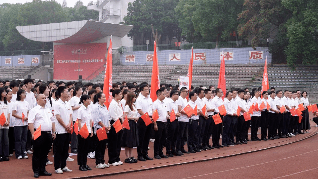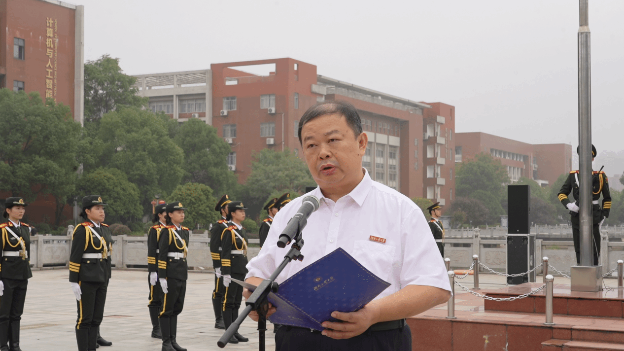 刘望在庄严的国旗下发表讲话,他强调,新中国成立以来,我们党团结带领全国各族人民创造了发展奇迹。特别是进入新时代,在习近平新时代中国特色社会主义思想指引下,国家综合实力、国际影响力显著提升,正以不可阻挡的步伐迈向中华民族伟大复兴。湖南工业大学始终与国家发展同频共振,从“工业底色、包装特色”的日益彰显,到“创新引领、开放发展”战略的深入实施,学校始终与祖国共成长、与时代同奋进。他指出,抚今追昔,意在登高望远;知往鉴今,志在开拓未来。纪念胜利,庆祝华诞,最好的方式就是将历史的启示、先辈的精神转化为推动学校高质量发展的强大动力。他强调,在庆祝新中国成立76周年的特别时刻,我们更要深刻领会爱国主义的时代内涵。对学校而言,就是要坚守为党育人、为国育才的初心使命,把学校建设好、发展好,培养出一流人才、产出一流成果。