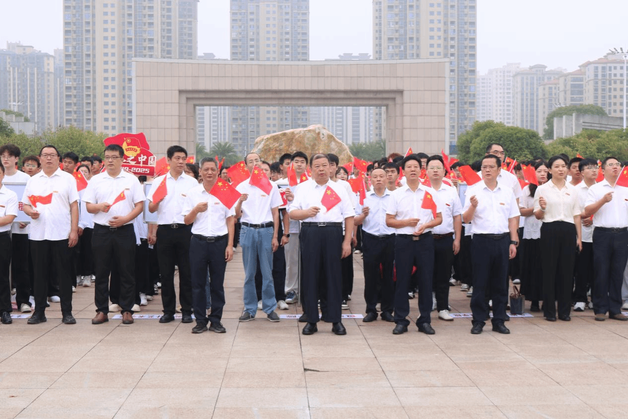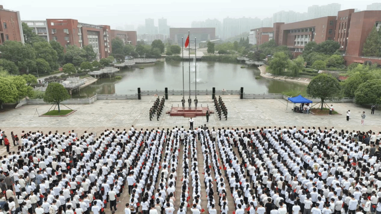 上午八时整,国旗护卫队迈着铿锵有力的步伐,庄严护卫国旗走向升旗台。伴随着雄壮的国歌旋律,五星红旗在晨光中冉冉升起,全体师生肃立行礼,齐声高唱国歌,激昂的歌声与澎湃的爱国热情交织,共同汇聚成对祖国繁荣昌盛的美好祝愿。
