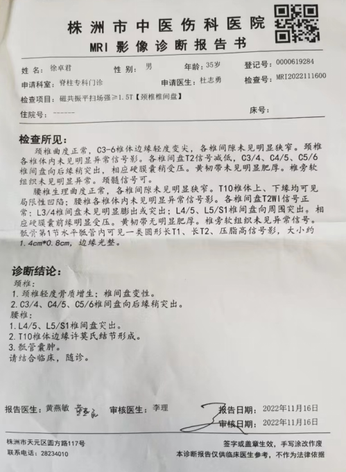 第五天,第六天......,如此日复一日,夜不能全寐,日不能停息。一直坚守抗疫第十六天,实在抗不住啦,腰疼得站不直了,才向院里申请校外就医。医院诊断,立即住院,学院领导闻讯,异常感动,曰,徐老师,真模范教师也,为疫情防控,累到腰损,虽不是党员,但一直冲锋在前,事迹感人至深,是我等学习之楷模,是bwin必赢精神之脊梁。