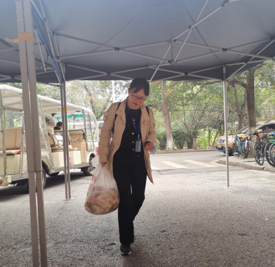 土木楼是疫情防控的大本营,戴利在静默期间一直任劳任怨地照顾大家的饮食起居。刚开始静默的几天,大家都睡在办公室的沙发上,没有被褥,大家都是和衣而眠。在收到资产处领取物资的通知后,戴利第一时间组织党员志愿者搬运和分发行军床和被褥,担心大家晚上值班很晚,还把床单铺好、被套套好,让大家即使睡在办公室,也能感觉到像在家里一样的温馨。晚上办公室难免有很多蚊子,戴利总是在空闲的时候挨个办公室点好蚊香,就为了让大家在结束一天辛苦的工作之后,夜晚进入梦乡时尽可能睡得更舒服更香。在收到校友捐赠的物资后,戴利第一时间安排教师和党员志愿者搬运并做好分发方案,清点物资一直忙到凌晨。她还帮助同学们采购生活物资,疫情突如其来,很多同学都未能及时采购生活物资,戴利一天到晚忙前忙后,帮助同学们采购了大量物资及徒手搬运至学生宿舍门口,累得满头大汗、腰酸背痛;她还自费给贫困生送温暖,她心系贫困生的生活状况,自费给贫困生送去泡面及水果等物资。