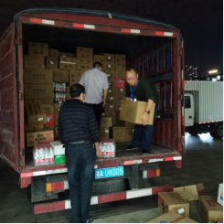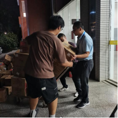 院领导实在是心疼老师们次日还需值班,特叫来学生志愿者前来帮忙,听说是优秀校友捐赠的物资,同学们个个干劲十足,肩扛手提,汗流浃背直至全身湿透,在师生们齐心协力、共同奋斗近两个小时后,所有的捐赠物资全部卸载及搬运完毕。
