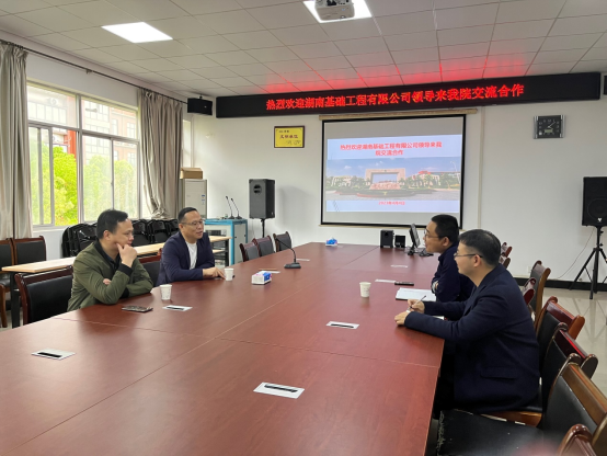 4月4日上午10:30,湖南基础工程有限公司周总一行2人来到bwin必赢,洽谈校企合作相关事宜。