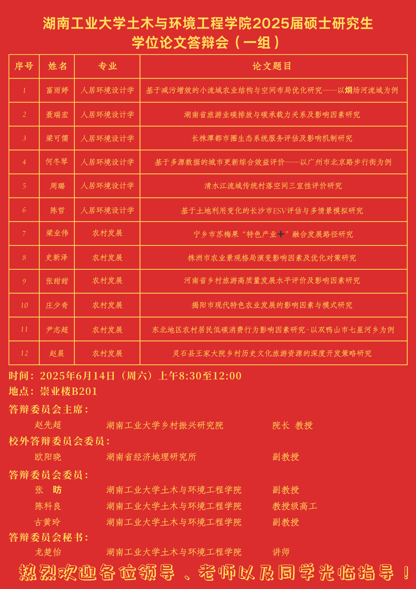 2025年土木与环境工程学院硕士研究生学位论文答辩安排(一)(人居、农发一组)