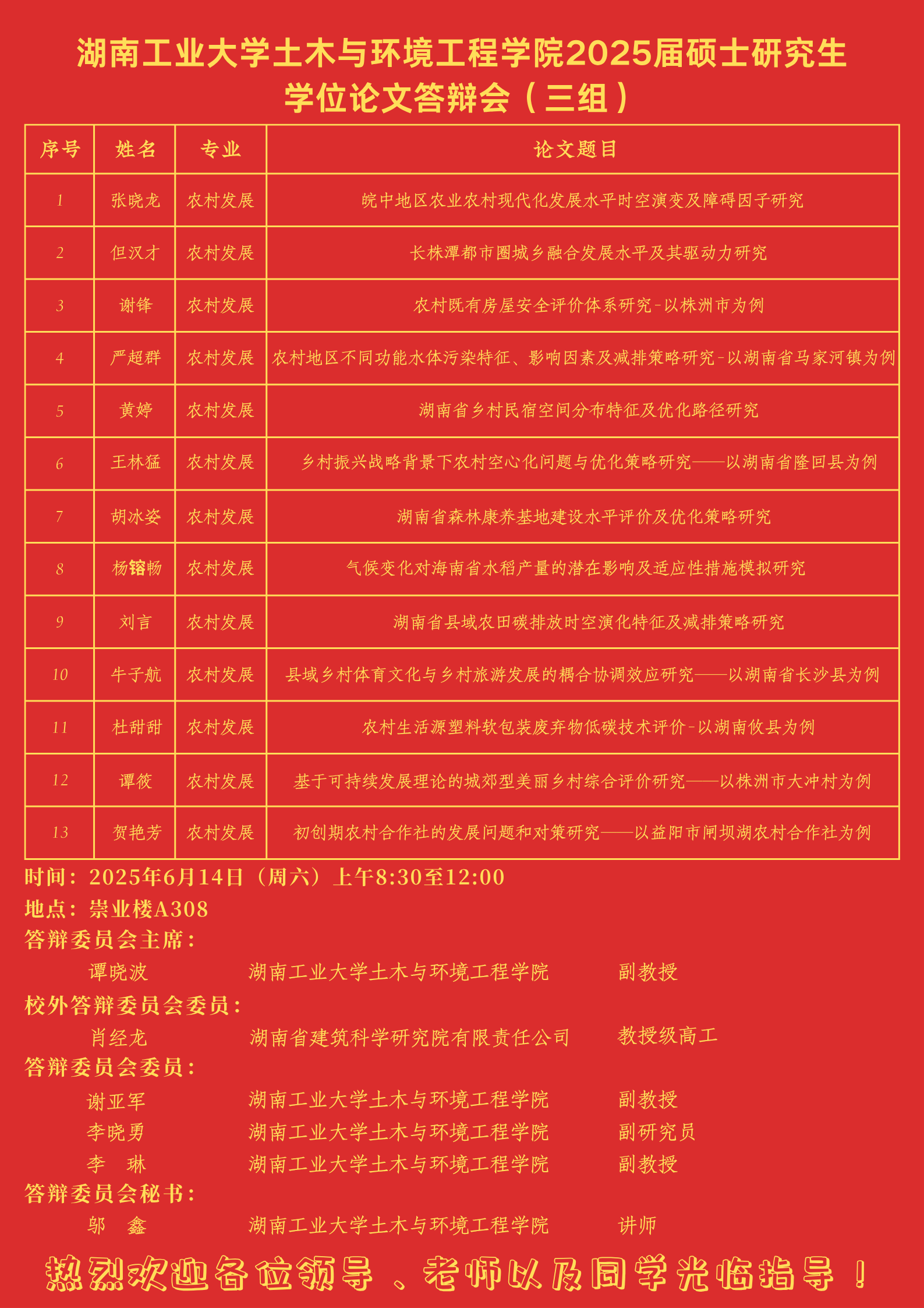 2025年土木与环境工程学院硕士研究生学位论文答辩安排(三)(人居、农发三组)
