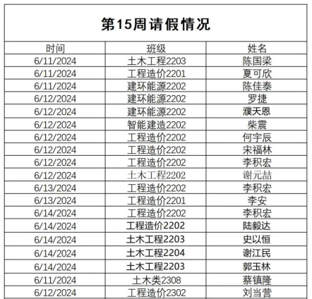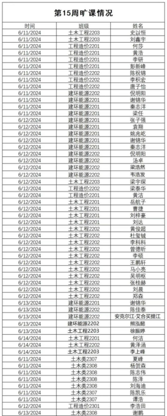 2023-2024第二学期学院学风建设第十五周课堂检查结果公示